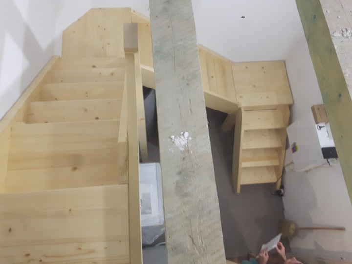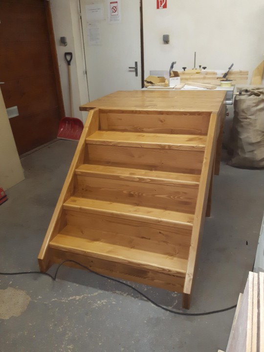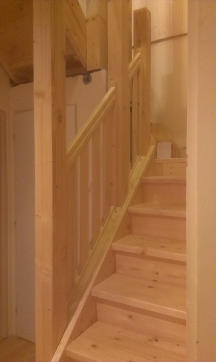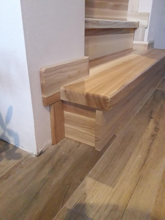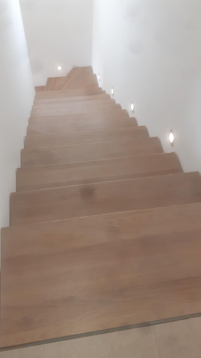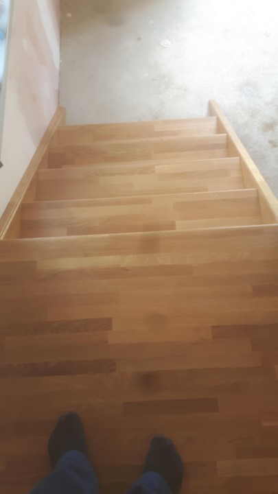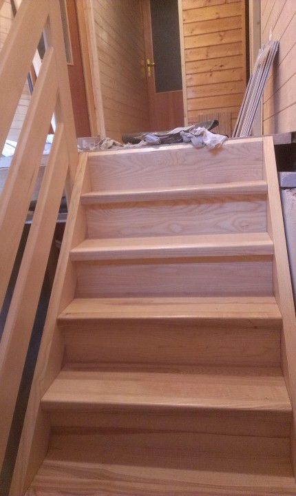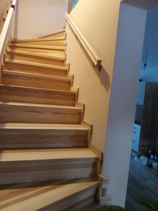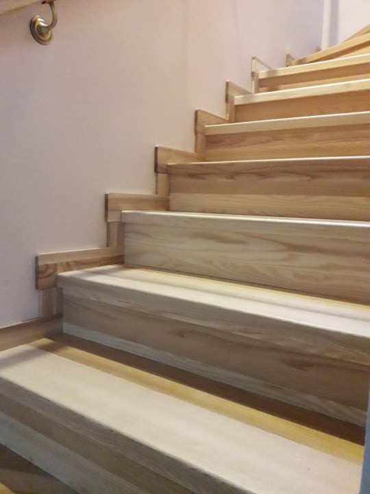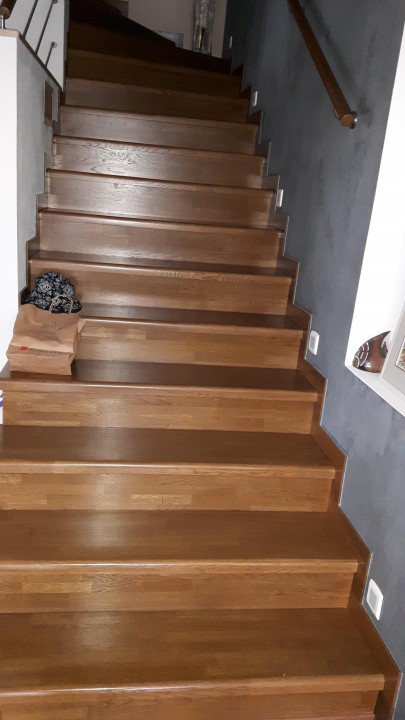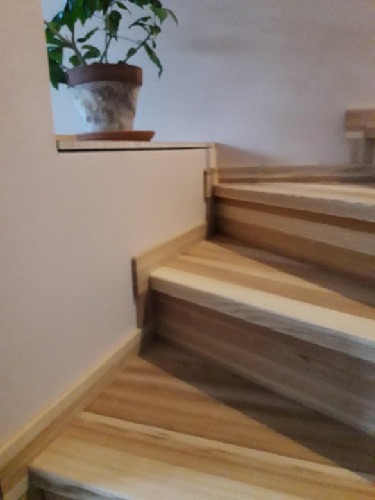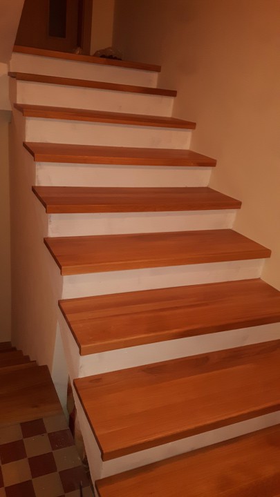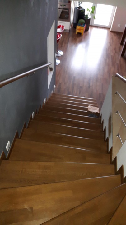 Schody vyrábame samonosné, obkladáme betónové schody. Používame materiál dub, buk a jaseň. Samozrejmosťou je, že k vyrábaným schodom dodávame aj zábradlie.